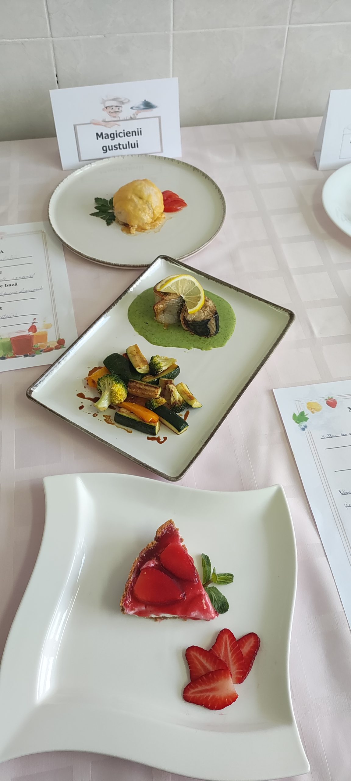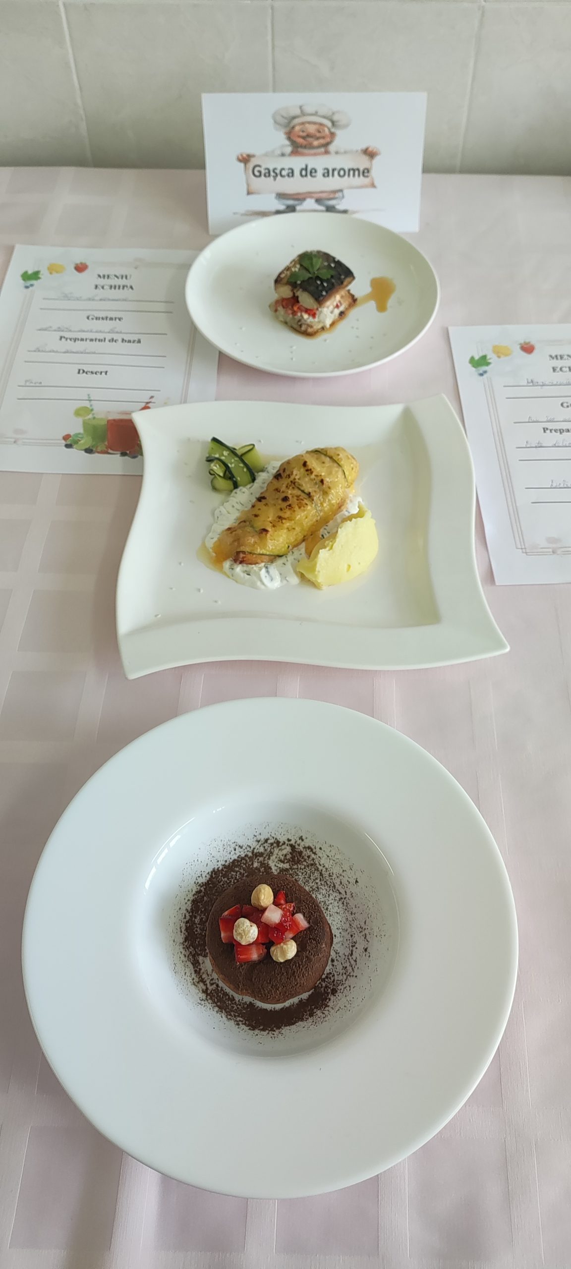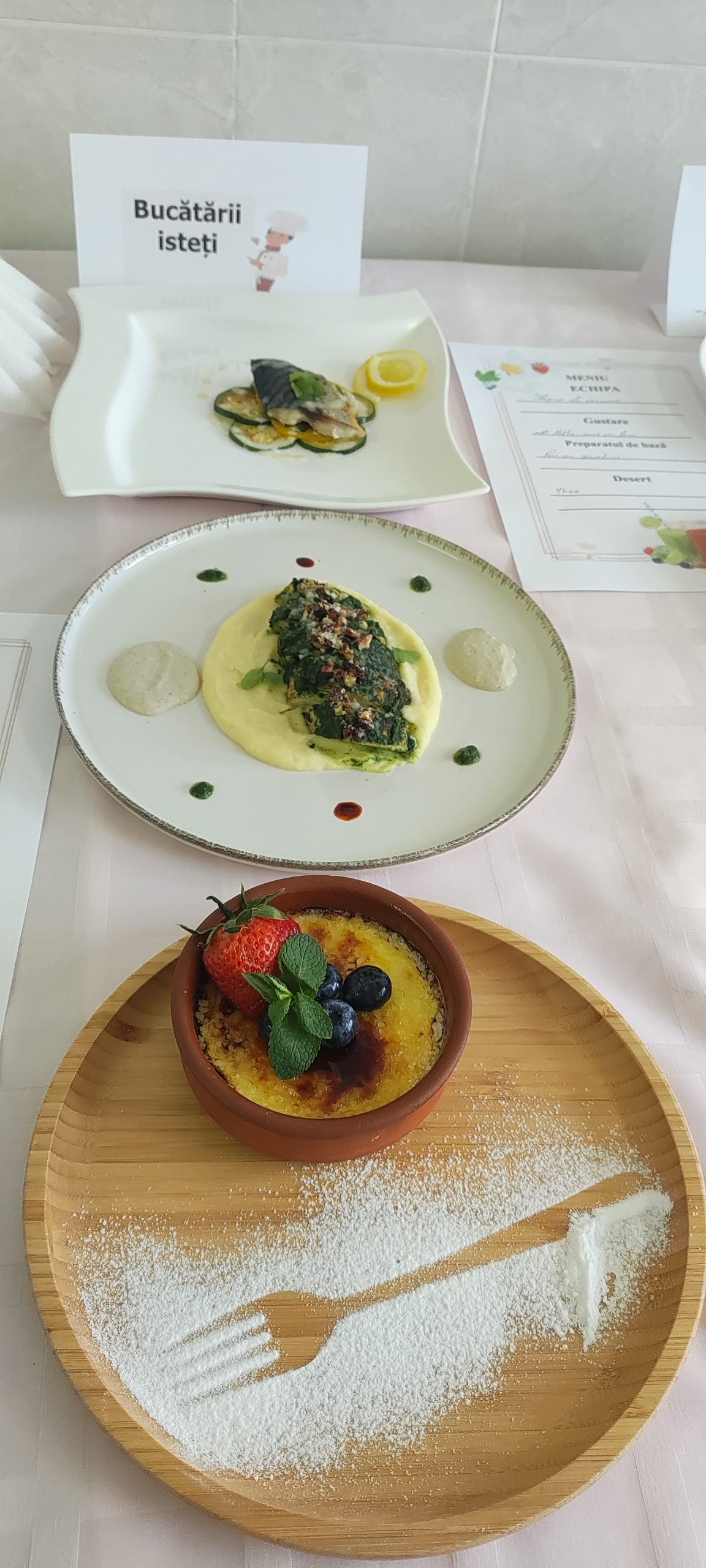 - Preparatul de bază cu garnitură și sos – probă care a evidențiat tehnicile culinare și armonia ingredientelor;